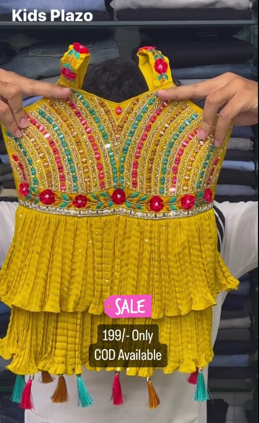 White Color Embroidered Plazzo Suit For Kids On Sale