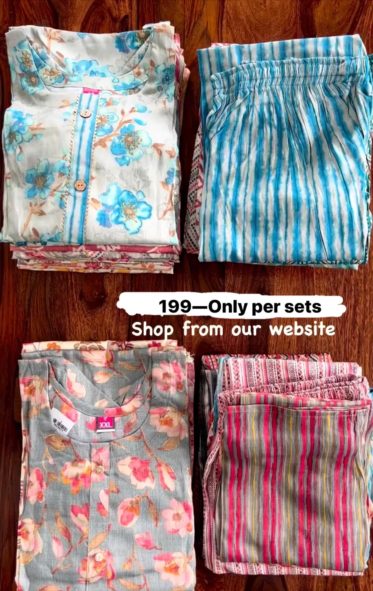 Womens Flower Print Multicolour Cotton Silk Kurti Set